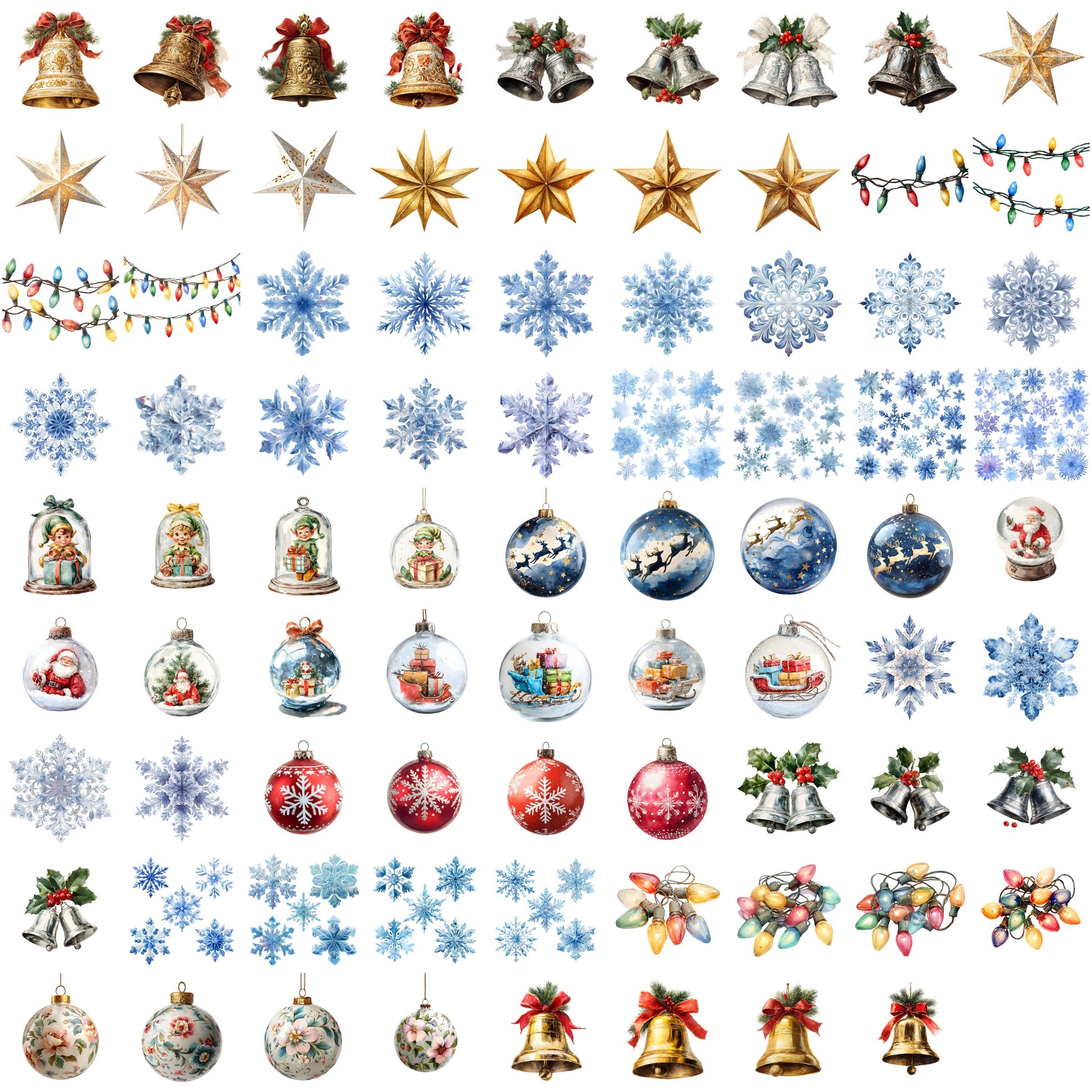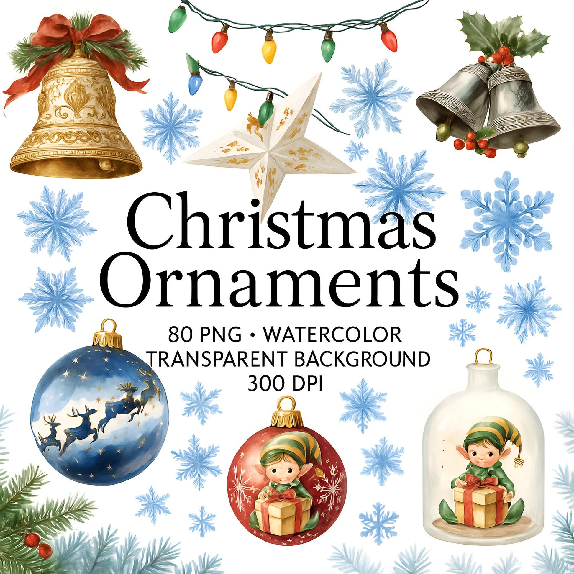 Christmas Ornaments Clipart β 80 PNG β Watercolor Transparent Files for Junk Journals & Crafts