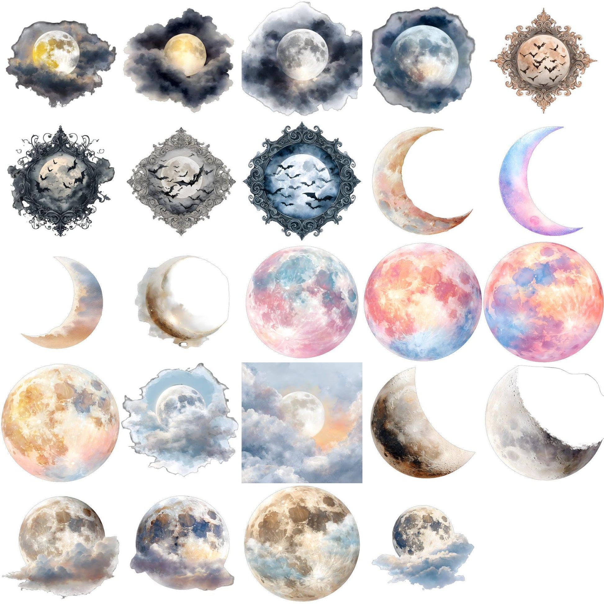 π¨ Watercolor Halloween Moon Clipart β 24 PNG β Transparent β Watercolor Style β High Resolution β 300 DPI Clipart Set β 24 PNG β 300 DPI, Transparent Background