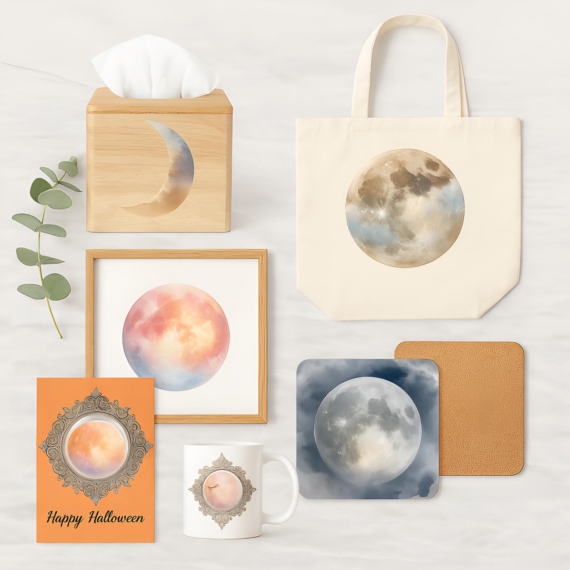 Bring creativity and charm to your projects with this beautiful Watercolor Halloween Moon Clipart β 24 PNG β Transparent β Watercolor Style β High Resolution β 300 DPI Clipart Set. Each element is crafted in a realistic watercolor style to add elegance, magic and a handmade feel to your work.
