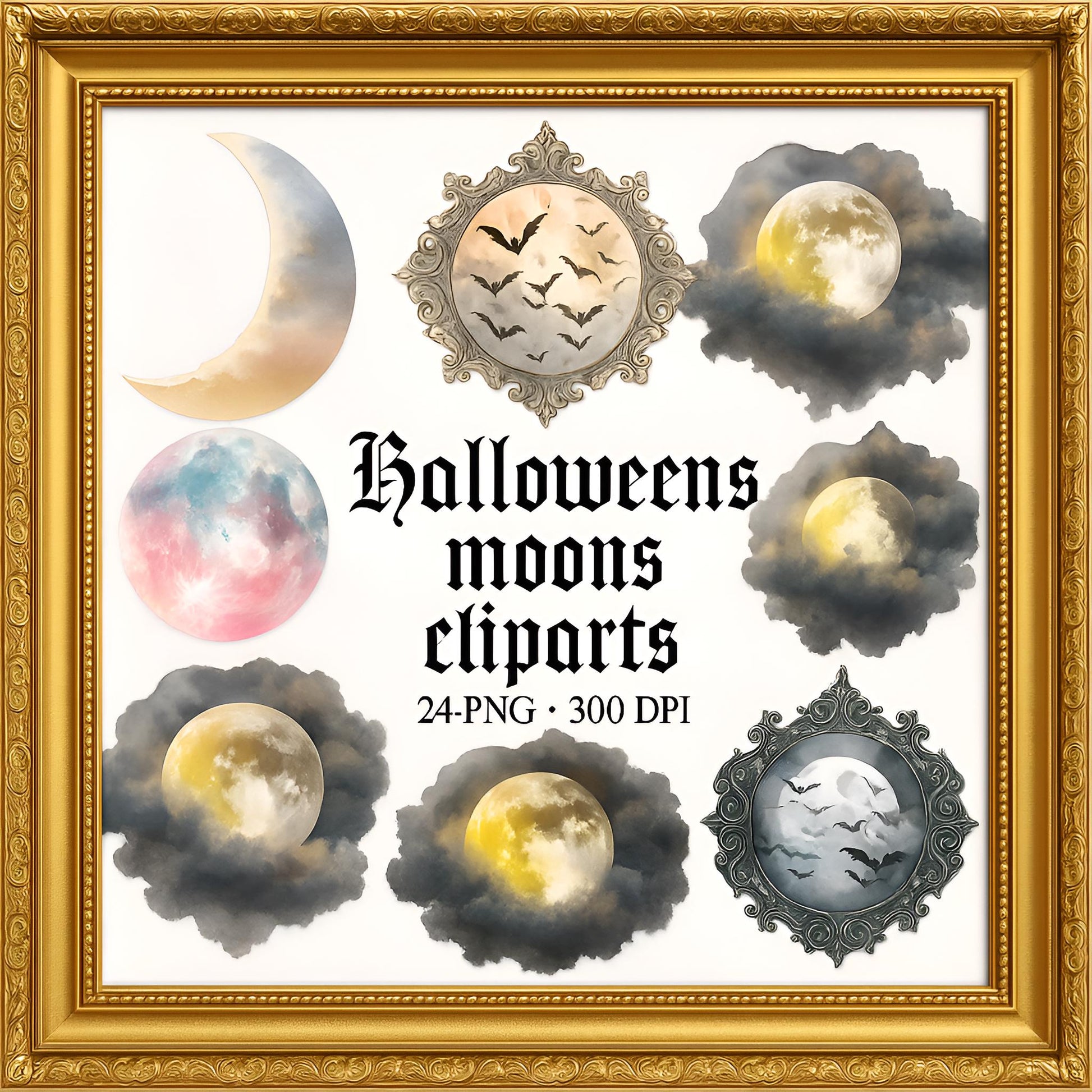 Halloween Moon Clipart β 24 PNG β Transparent β Watercolor Style β High Resolution β 300 DPI