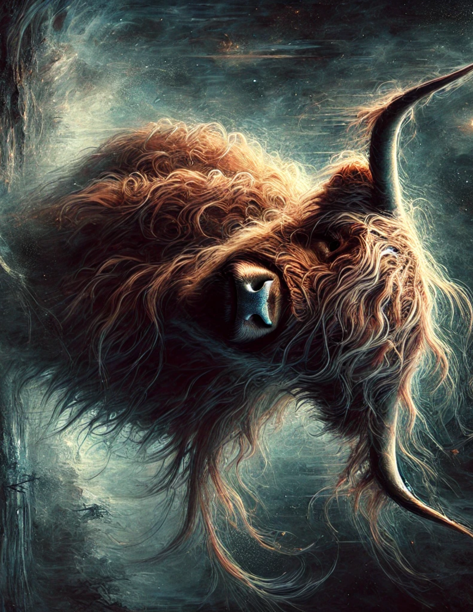 Sticker Sheet – Rice Paper Decoupage Surreal Highland Cow Horizontal Full Cat. No. 4660