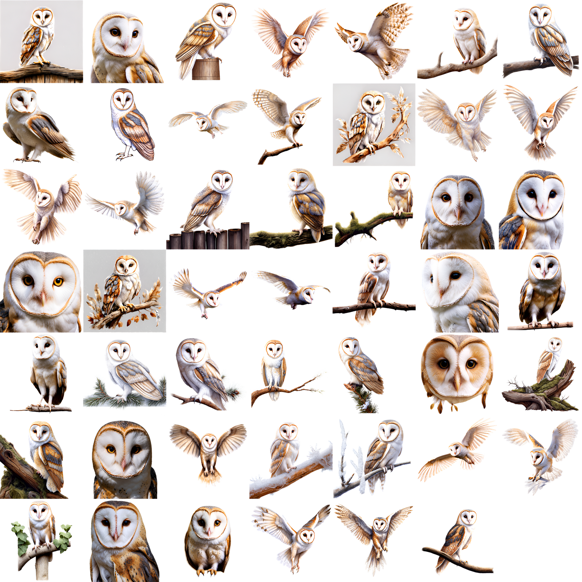 Watercolor Barn Owls Clipart Set: 48 PNG Designs with Transparent Background (Digital Download)