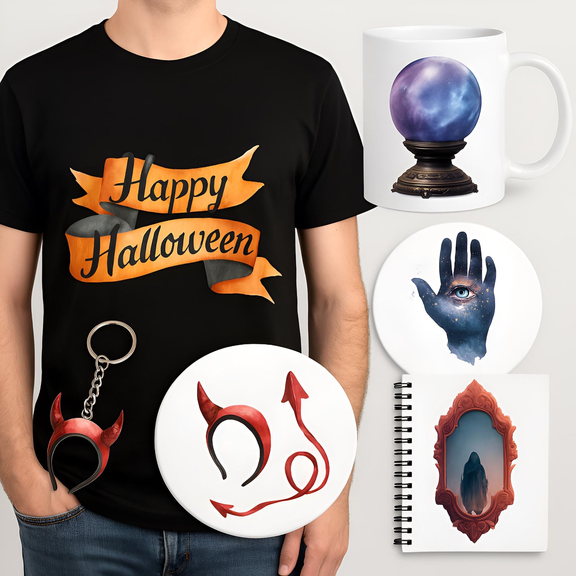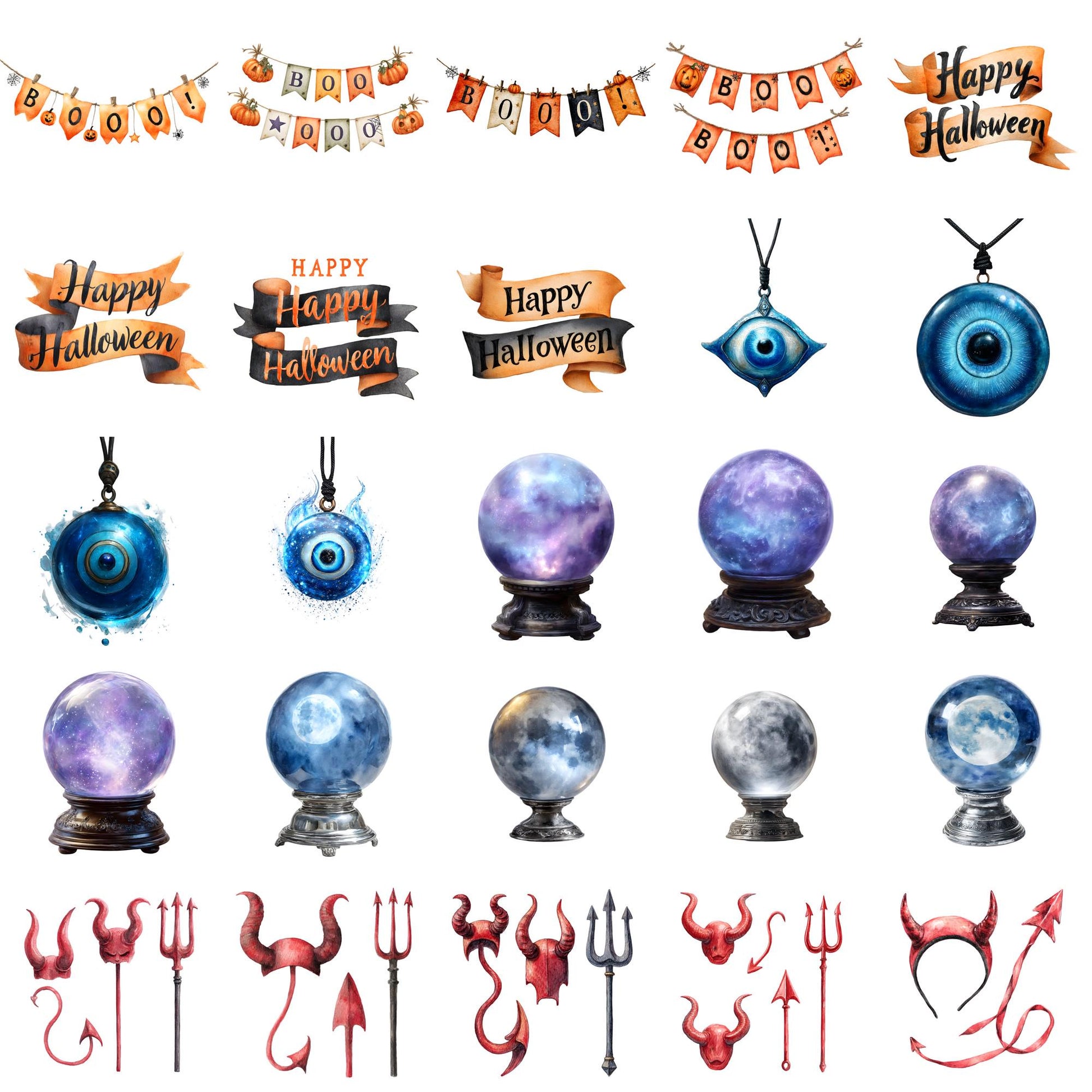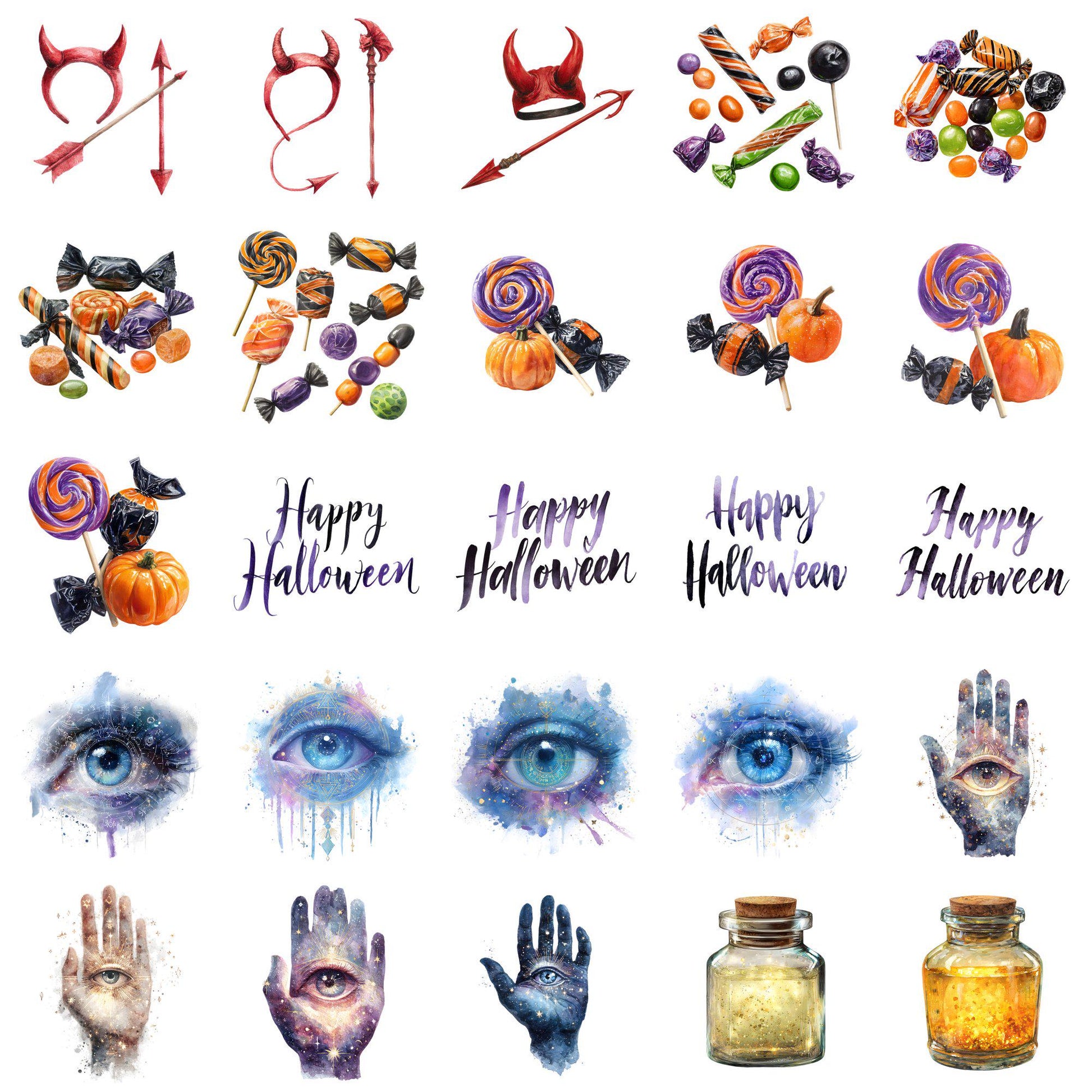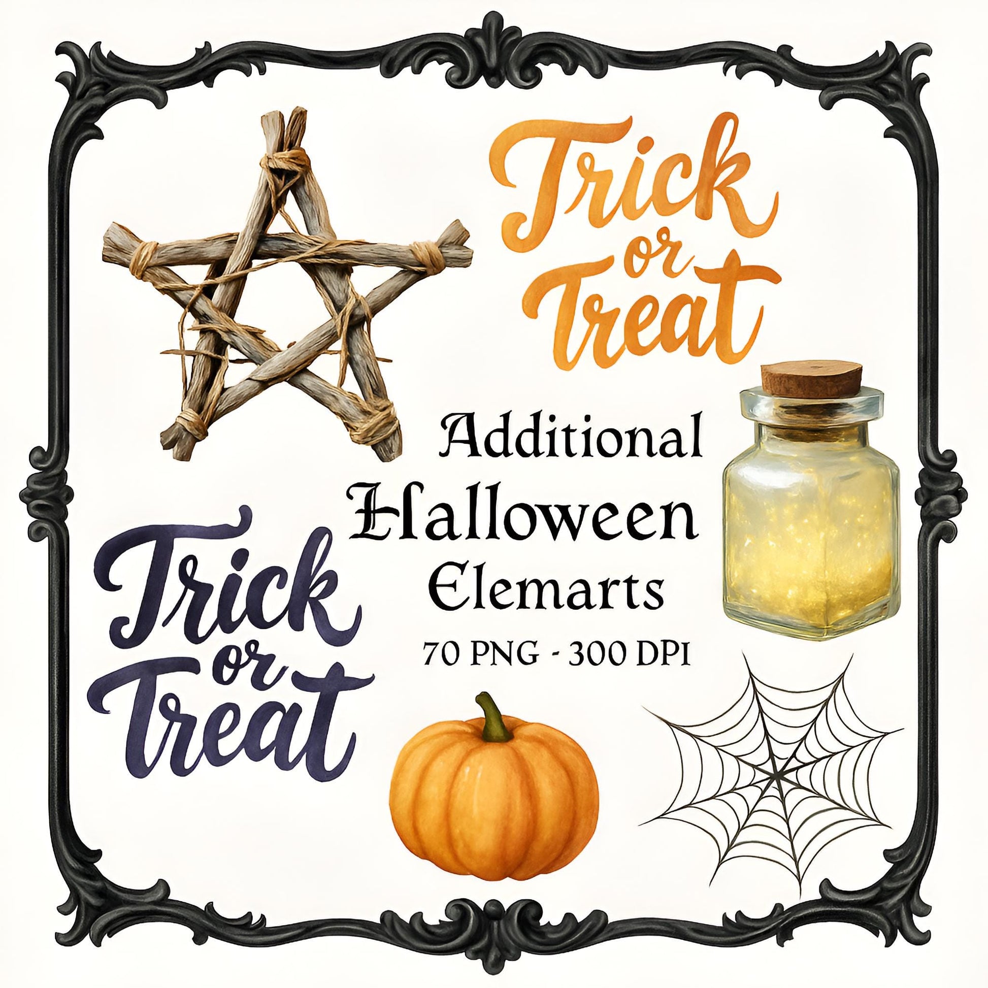 Watercolor Halloween Clipart Bundle: 70 PNG Additional Elements (Digital Download)