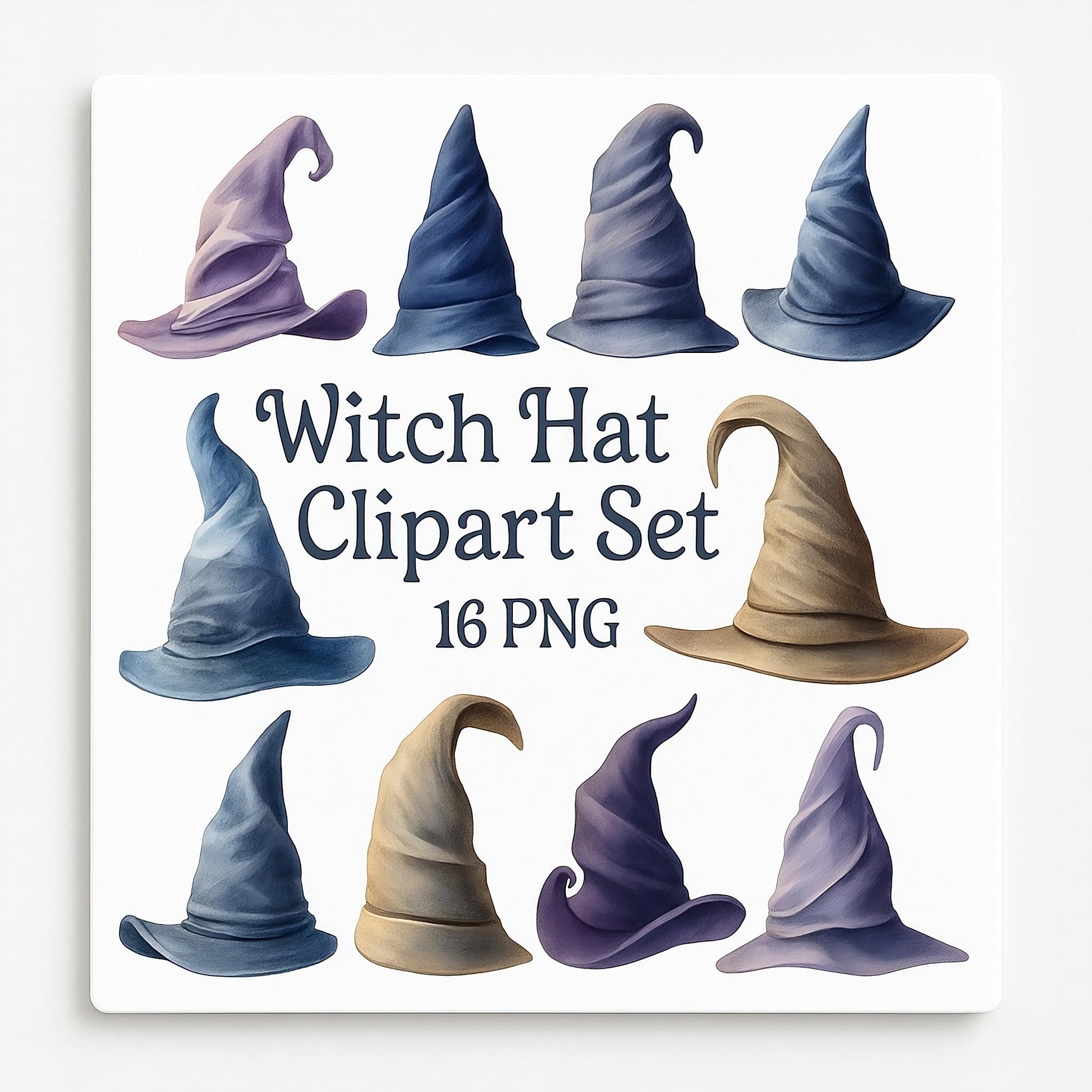 Witch Hat Clipart Set β 16 PNG β Halloween Hats β Transparent Background β Watercolor Style β High Resolution